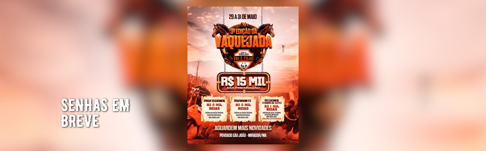 Pronto! Após confirmado o pagamento, suas senhas já estarão reservadas. Tenha uma boa vaquejada.